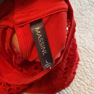 Never worn, hung in closet. Lace detail on top, keyhole design with buttons in the back. Stretchy. Fits TTS.