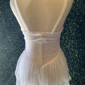Vintage Lace Top with Underwire. Delicate Mesh Back, comes in a v half of the torso giving it some volume. Gorgeous appliqués, pearl beading throughout and delicate pink bows.