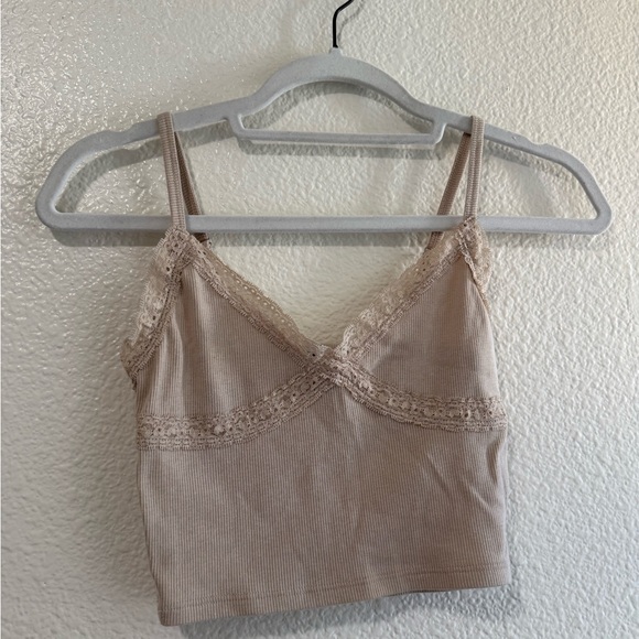 Stylish ribbed tank top with delicate lace trim. Perfect for layering or wearing alone.