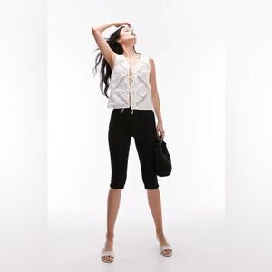 Top Shop Floral lace adds to the breezy feel of a skin-baring, waistcoat-style tank perfect for the hottest days. Front tie closure V-neck 87% cotton, 13% linen Machine wash, line dry Imported.