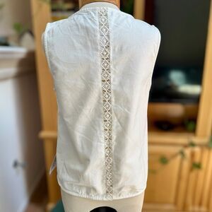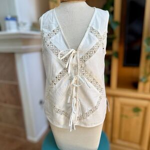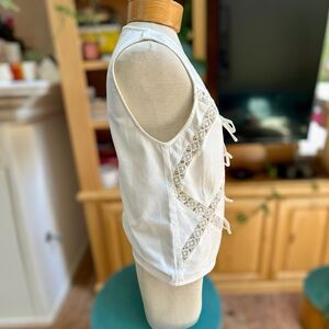 Lace Trim Tie Front Cotton & Linen Tank - Ivory NWT
