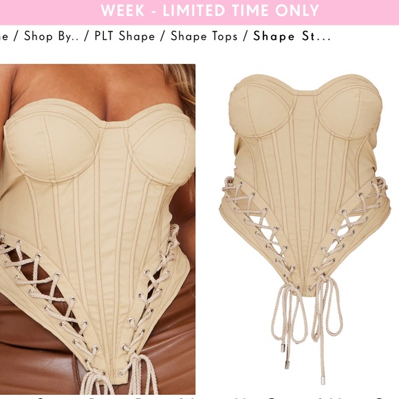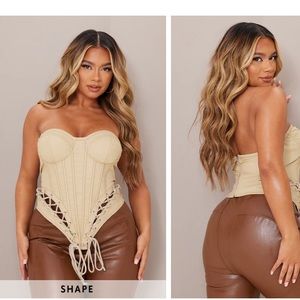 Stone colored lace up corset with zipper in back.