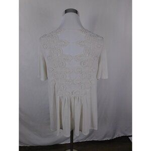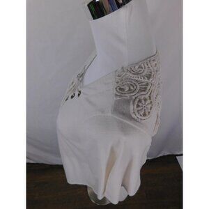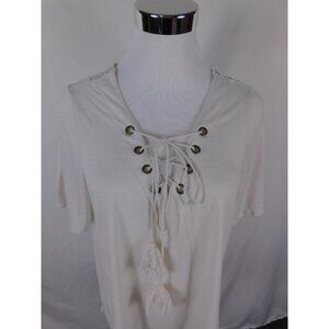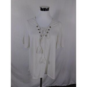 Lace Up Tassel Crochet Peasant Shirt Womens Large White Tunic Boho