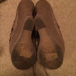 Lace Up Wedges from Ross: Condition: Used/acceptable. Color: Tan. Scuff Marks on one side of shoe. Signs of Wear on bottom of shoes.