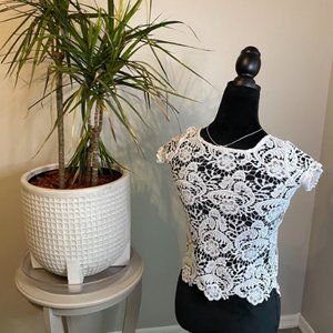 Copper Key lace white crop top. Beautiful lace/flower detail throughout. Sleeves are slightly tight. Sheer material - will require an under shirt or cute bandeau.