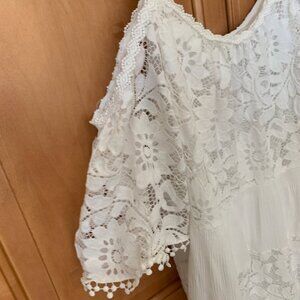 Lace and Gauze Dress Spaghetti Straps and Drop Sleeve