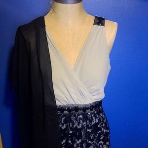 Elevate your style with this sophisticated 37" V-neck dress, a harmonious blend of allure and elegance. The bodice, in a refined beige hue, exudes timeless charm while the black gem accents delicately embellish the straps and waistband, adding a touch of glamour. Transitioning seamlessly, the skirt is adorned with intricate black lace, lending an air of enchantment to every movement. The dress boasts a graceful tie-back for a customized fit and comes complete with a complementary shawl, offering versatility and grace. A captivating ensemble that effortlessly captures sophistication for any special occasion.