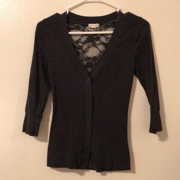Cute gray lace back V neck