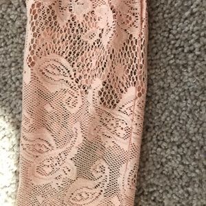 Pale blush, lace dress, with open back hole. Only worn once, basically brand new! Size large.