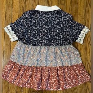 Blue and white floral button-up blouse with lace collar #cottagecore