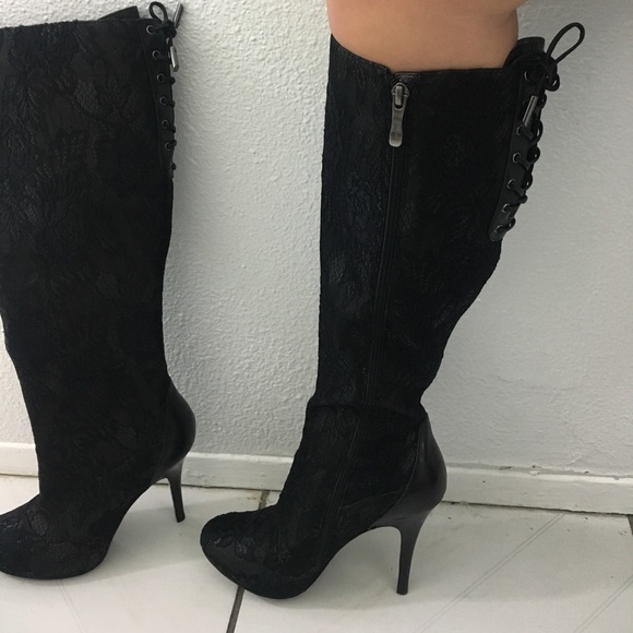 Lace all over the boots. It's a very different boot and can be paired with anything. It's a 7 1//2 but feels like a 7. Brand new not Michael Kors sorry.