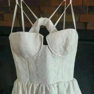Lace bustier dress with asymmetrical skirt