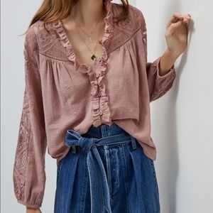 Mauve long lace button down