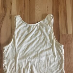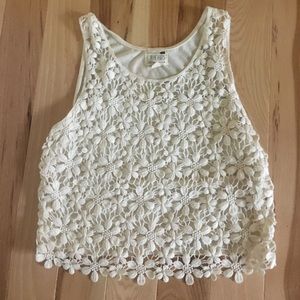 This is a cream colored lace crop top, which is very nice for spring and summer. It's very comfortable and the lace looks like flowers. Can be dressed up or down.