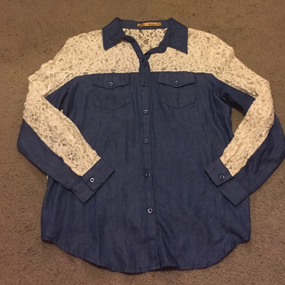 Lace denim button up