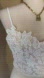 Gorgeous off white bralette features lace and patch floral detail. Adjustable straps, back zipper.