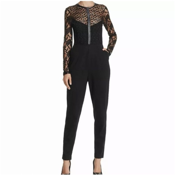 Lace faux leather French Connection Black Sheer Jumpsuit size 6