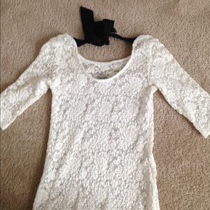 Gorgeous body con lace shirt from forever 21! Very fitting but also very stretchy and comfy . Very casual or very dressy, only won't once for Christmas last year