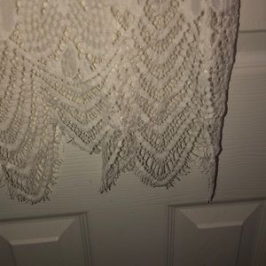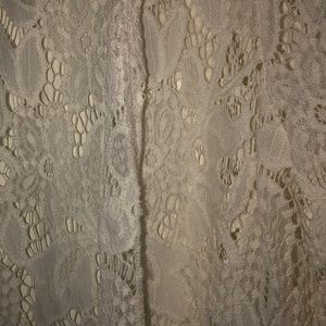 Off-white lace kimono. 3/4 length sleeve. From Francesca’s💓 I wore it a few times but there aren’t any defects.