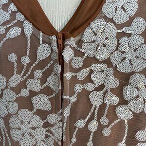 Beautiful lace dress with nude lining, size medium, made of polyester/spandex, midi length, fitted worn only once.