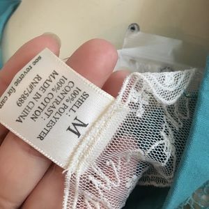 New nick & Mo lace button down with front pockets, shoulder strap detail, & ruffled trim. Size medium approx measurements: bust 36”, length from armpit to hem 15”, length from collar to hem 25”, waist 33”, shoulder width 15” This top has not been used. Comes with brand tags and extra button. Turquoise.