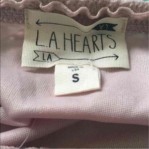 This is such a cute skirt. It has a long, shear, lace top layer that goes to the floor and a sold fitted mini skirt underneath. It has a slit about halfway up the side. It's a cute rosy pink color and super comfortable. Basically new, I've never worn it. It's so cute I just don't like the way it fits my body. You can wear it at your hips or higher waisted. Bought it from PacSun, brand L.A. Hearts.