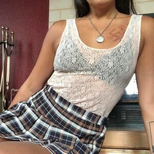 Creamy beige, floral stretch lace. Fits an xs-s perfectly. Could be worn with literally ANYTHING! Vintage Y2K with a scoop neck but no tag.