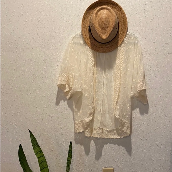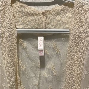 Beautiful lace pattern overlay. Worn once. See through.