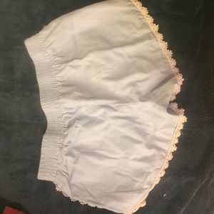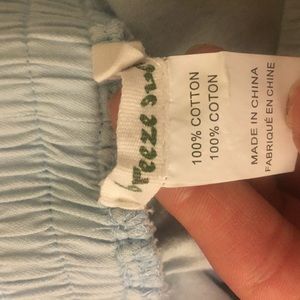Elastic waistband to stretch. They are a light blue cloud color. Pretty lace on the bottom edge. Size is too faded for me to tell but these would fit a small/xsmall they are not Victoria secret brand.