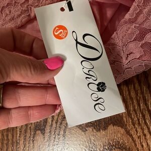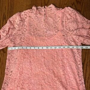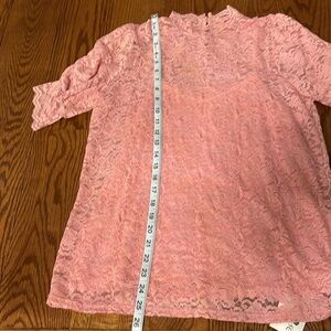 Lace woman’s mock turtleneck Lace stretch overlay attached tank top / blouse pink size small