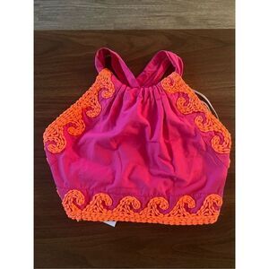 Lace the Label Embroidery pink crop Top size S NWT $240