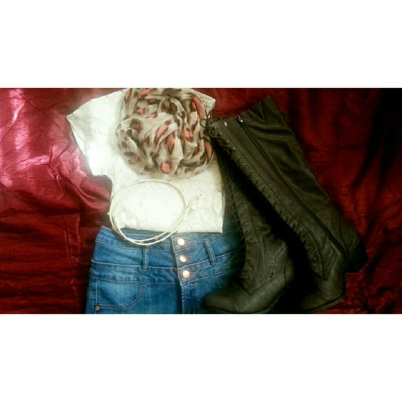 Laced floral white top, see through. Good condition. BOOTS SOLD SEPERATLEY.