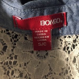 It's a lace shirt with a denim collar on the top. Shows a little bit of your tummy but it's cute overall.