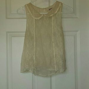 4 ITEMS FOR $10 Beige lace top. Signs of wear(piling) but no holes or stains. Sheer