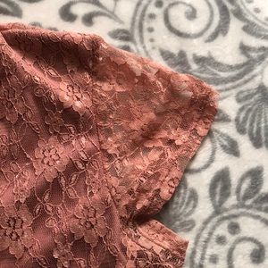 Light Mauve fully laced top with underneath liner. Mountain Lake size small
