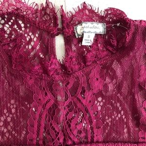 Very beautiful Burgundy Lace top size Small has a little stretch to it