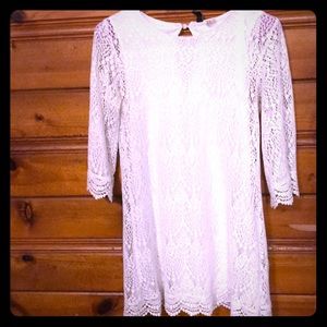 Pretty lace top that can go over jeans or tights. Gotten many compliments on it. It has some signs of wear as I have worn it quite a few times.selling for $1