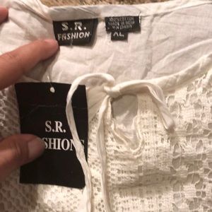 Brand new with tags white 100% cotton top with tie bottom.