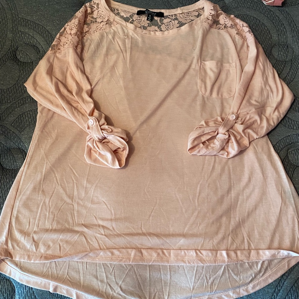 Light pink lace top with 3/4th sleeves. Brand new and has never been worn but doesn’t have tags. Size 1X