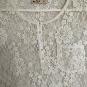 Cream Lace top by Hollister in a size small! Super cute and sexy with stretchy lace and adorable details! A great, versatile piece for your wardrobe!