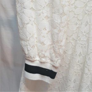 Blouse made for you. White lace with neck and hem stretch sweater edges. Ideal for Jeans. Sportswear look but is sassy, classy, and stylish.