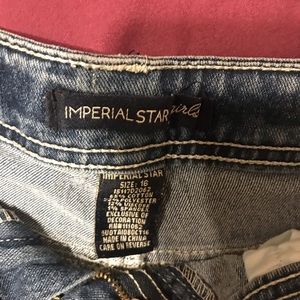 White lace trim blue jean shorts in mint condition, says size 16 which equals to about a size 3-4. Make me an offer!