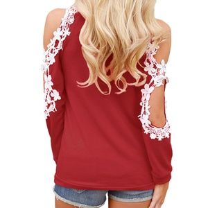 This lace trim cut out sleeve top is super fun and flirty. Dress it up with jeans and wedges or dress it down with shorts and sneakers.