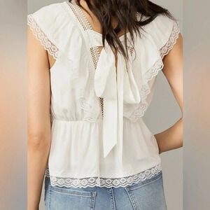 Lace trim tie back blouse size medium Audrey Parks for franchesca’s boho