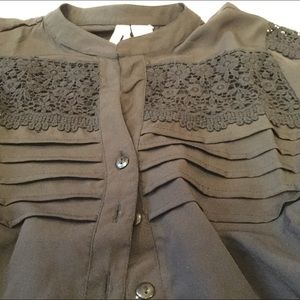 πGorgeous blouse with plated tunic style bottom. Buttons all over and lace on the shoulders and front! Back tie for customizing your look.(last photo)Very unique piece!!!π