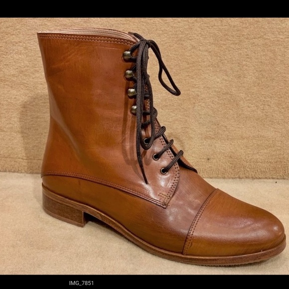 Rive Gauche Lace up Leather Ankle Boots hand made in Florence Italy. Size 40 Europe, Size 9 US.