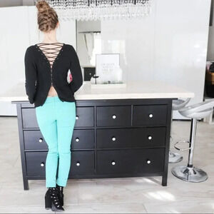 Sassy and edgy sweater that laces up the back. New without tags. Jeans in other listings.
