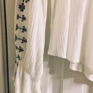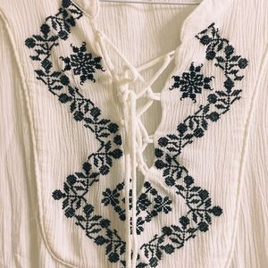 Lace up embroidered peasant blouse