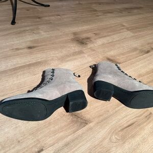 Lace up, side-zip suede boots with removable insole.