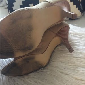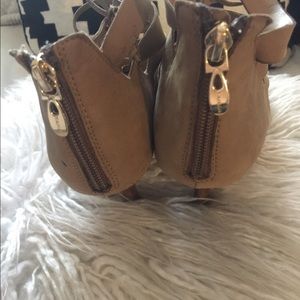 Lace up tahari sandals 8 mid heels tan nude Beige